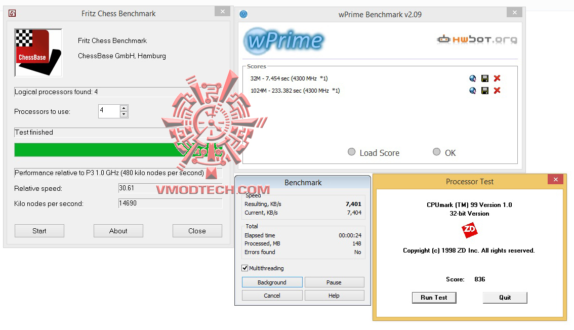 wPrime2.09 , CPUMark99 WINRAR 5.0 & Fritz Chess Benchmark