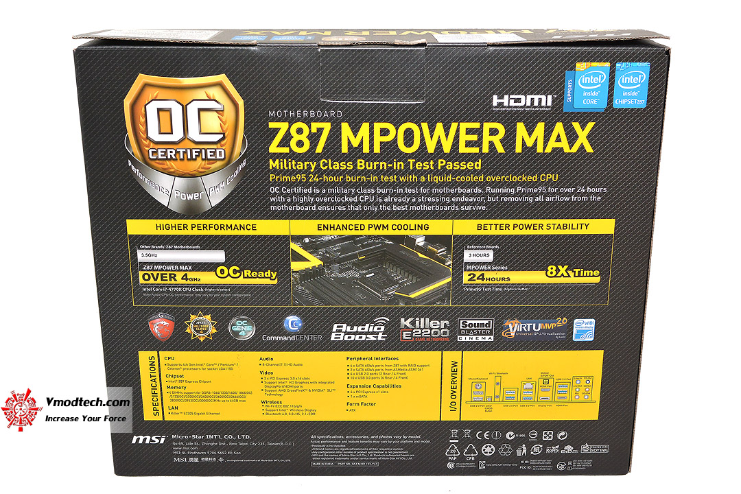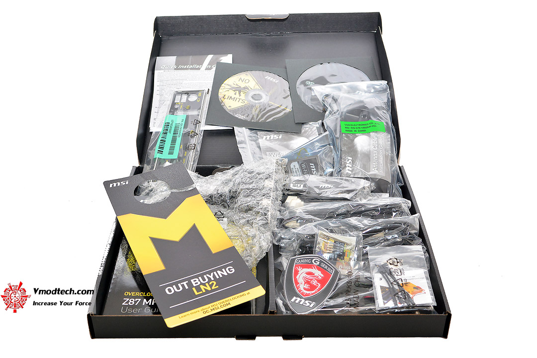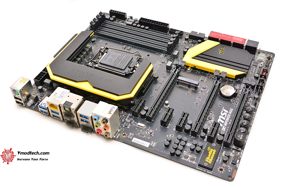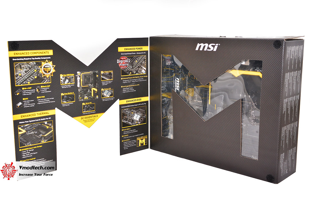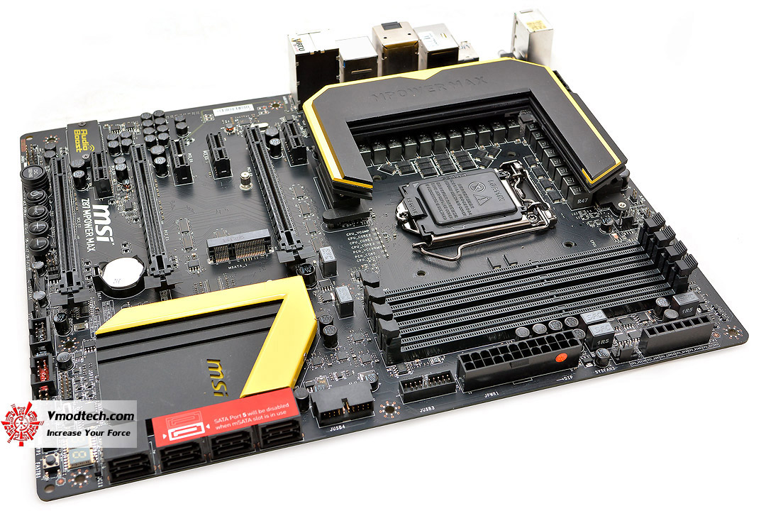 หน้าตาของมาเธอร์บอร์ดรุ่นนี้ จะออกแนวเข้มขรึมเหลืองดำดุดัน ตามคอนเซปต์บอร์ดสำหรับการโอเวอร์คล็อคของ MPOWER ครับ