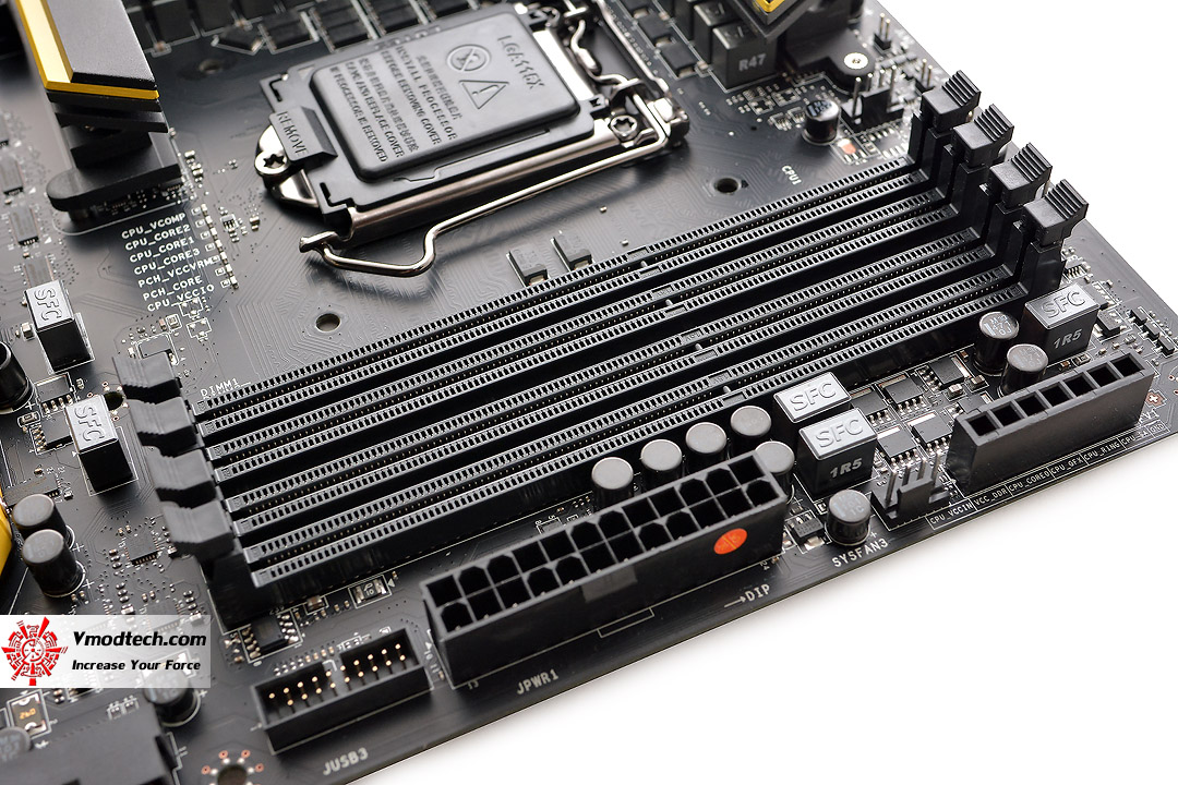 …Memory Slot แบบ Dual Channel ที่มากัน 4 Slots ได้ขนาดความจุรวมทั้งหมดสูงสุดที่ 32GB พร้อมจุดวัดไฟเลี้ยงส่วนต่างๆของบอร์ดอยู่ด้านข้างครับ