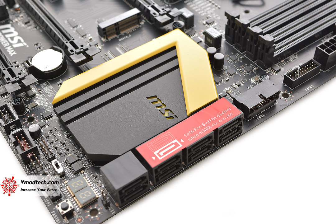 …หน้าตาชุดระบายความร้อนให้กับตัวชิปเซต Z87 มีไฟสีเหลืองสวยงามที่โลโก้ msi ขณะใช้งานด้วยครับ ส่วน SATA3 6.0GB/s 8 ช่องทาง จัดเต็มครับ