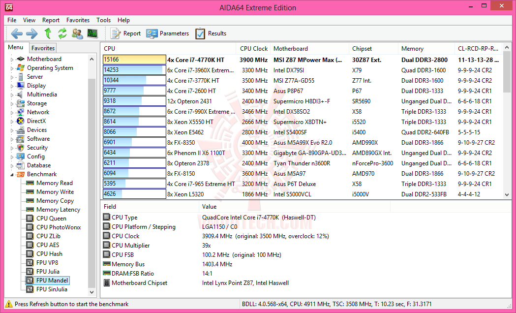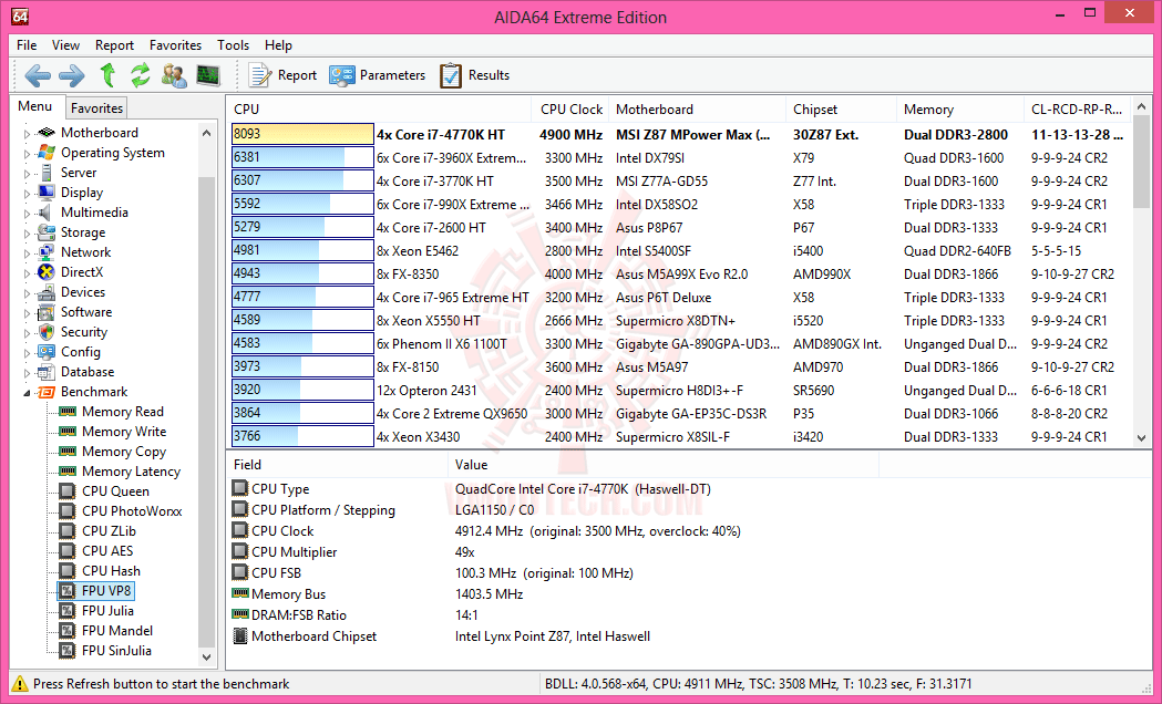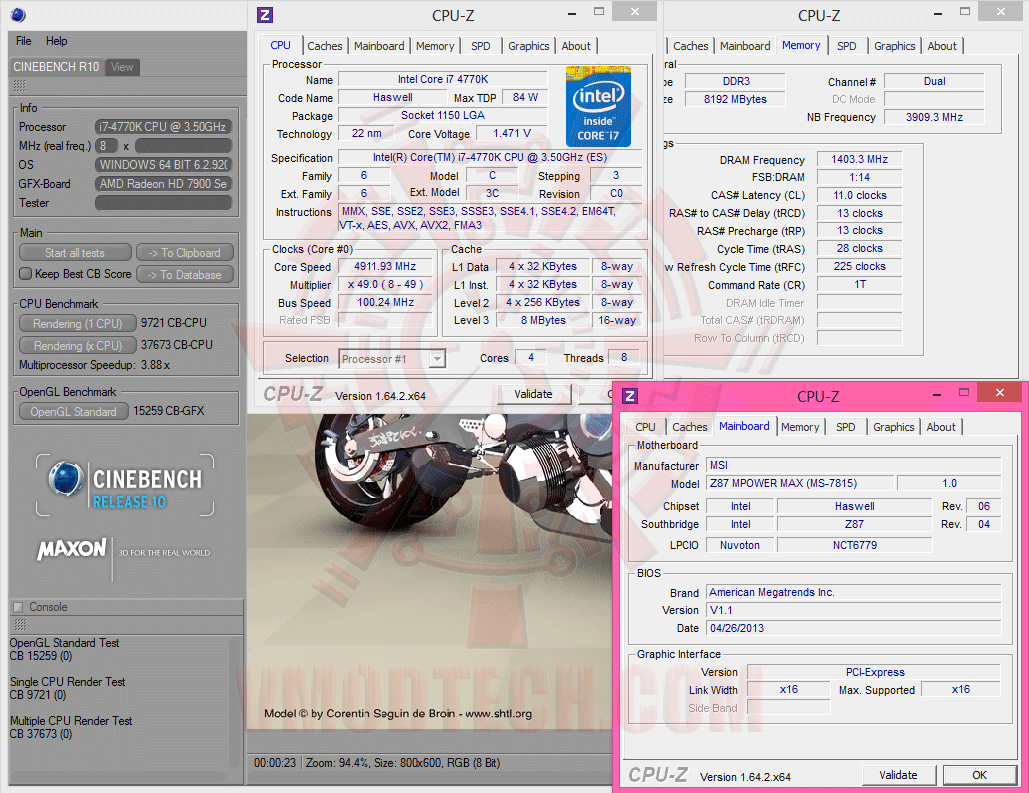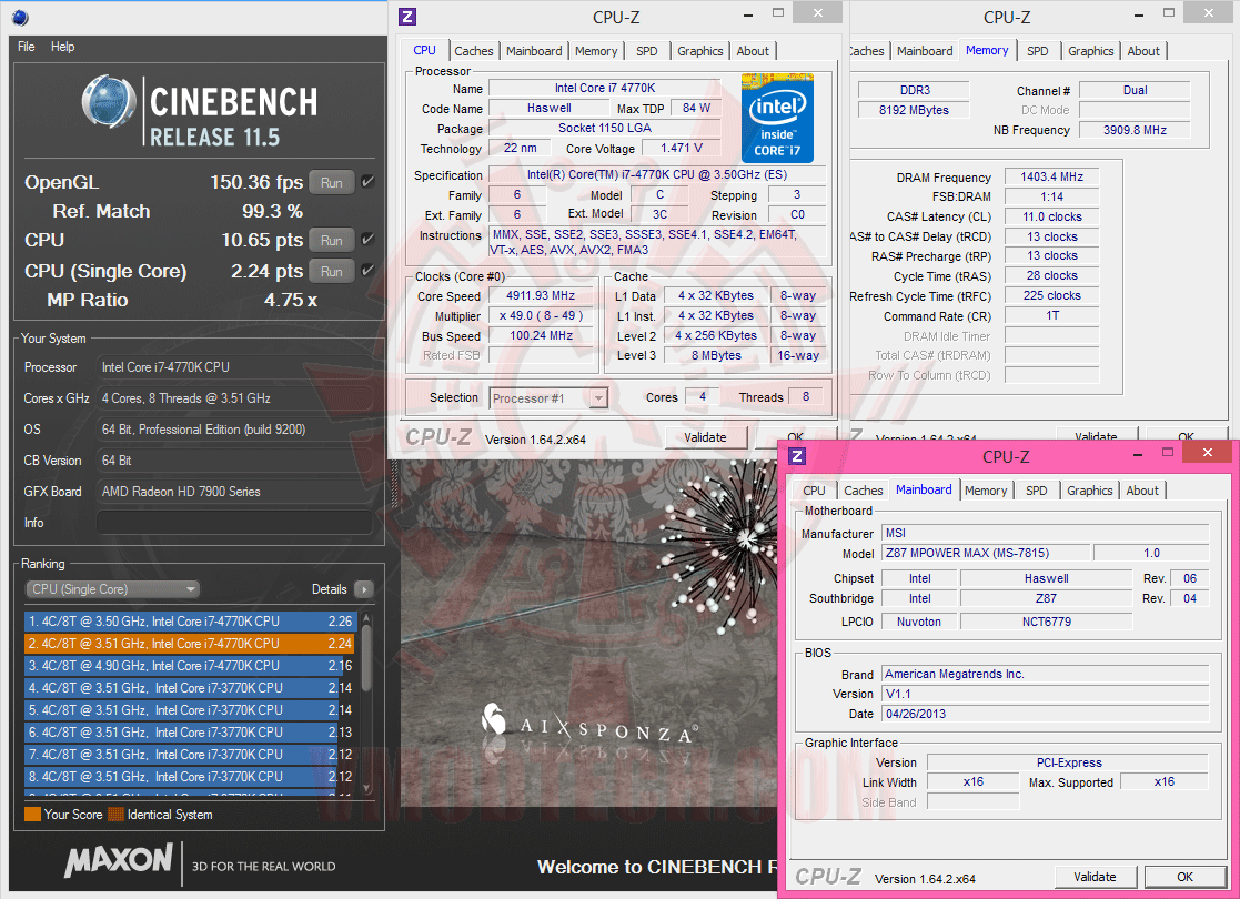 4th Generation Intel® Core™ i7-4770K @ 4,912 MHz Bclk 100.25 MHz DDR2807 11-13-13-28-1T