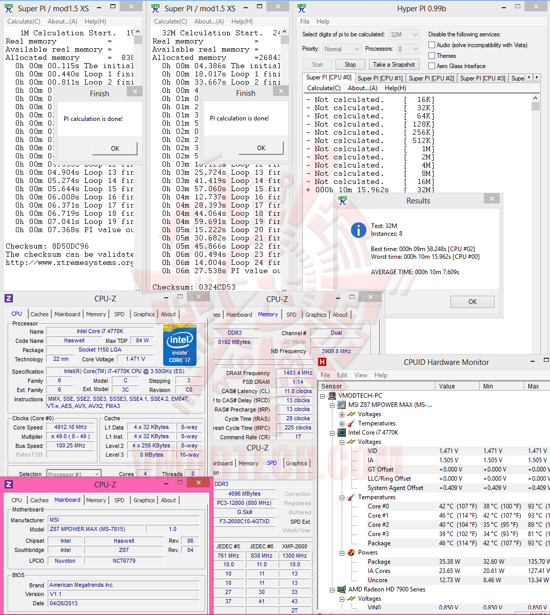 SuperPI 1M 1Thread, 32M 1Thread & 32M 8Threads