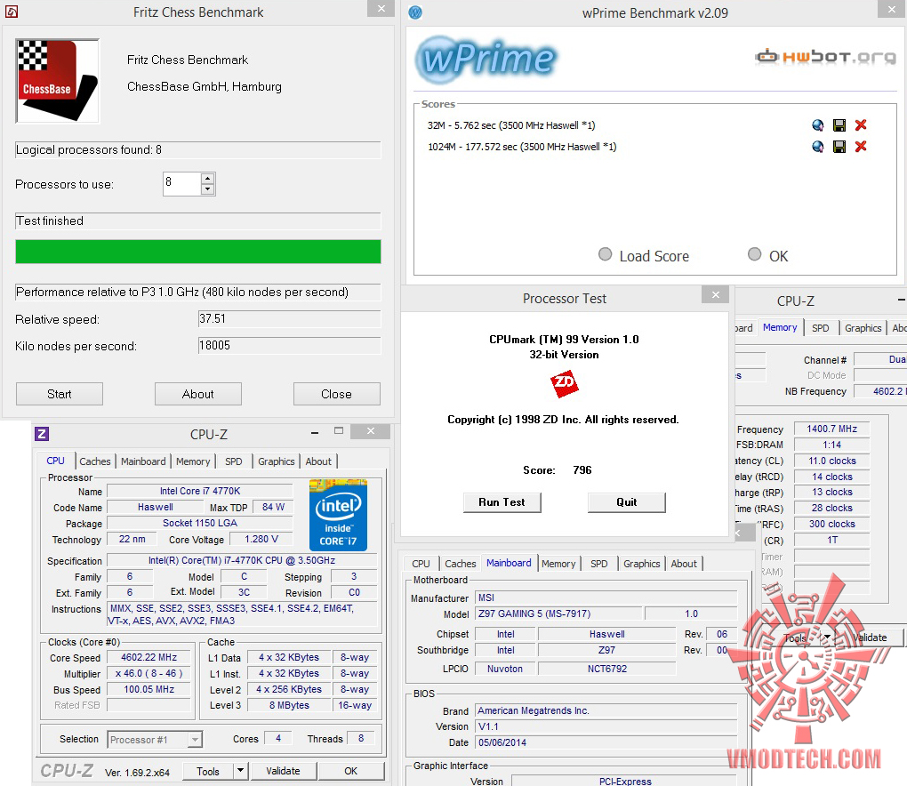 wPrime2.09 , CPUMark99 & Fritz Chess Benchmark