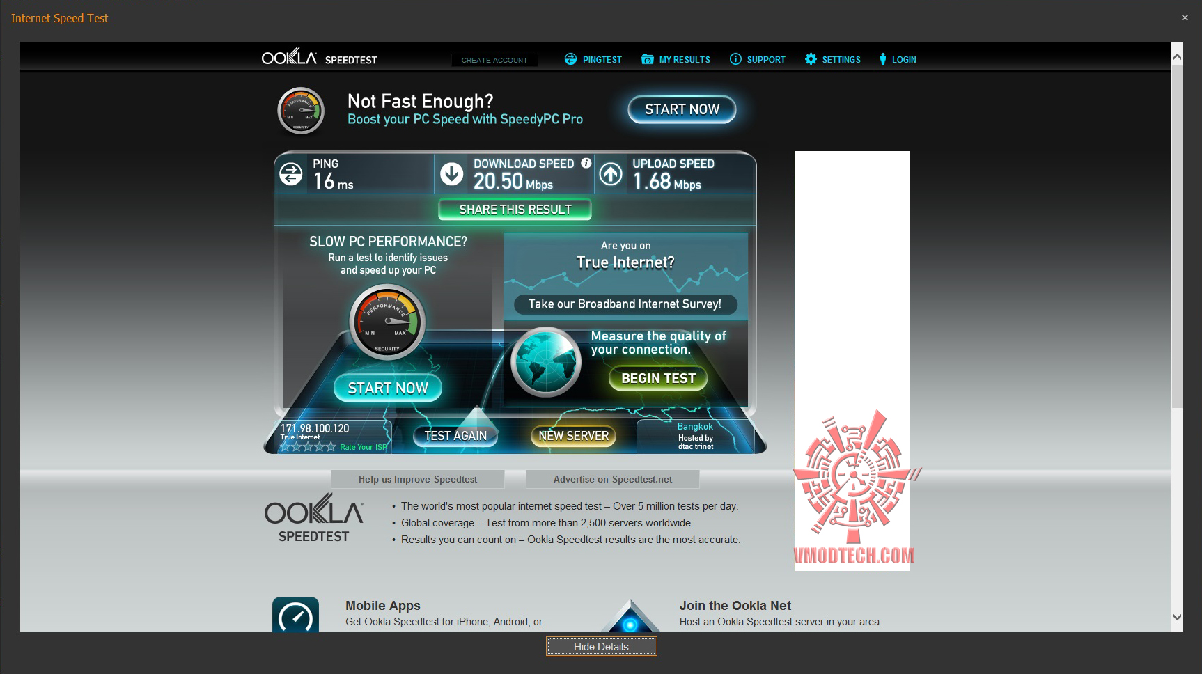 ความเร็วที่ทดสอบต่อกับ ookla Speestest ครับสามารถแสดงผลได้ทันที