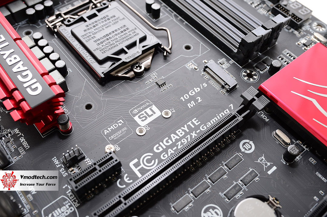 …PCI-E 3.0/2.0 X16 Slot ที่มาพร้อมกัน 3 ช่องทาง ที่สนับสนุนการทำงานในรูปแบบ 2-Ways SLI & 3-Ways CrossFireX ตามด้วย PCI-E 2.0 X1 Slot อีก 3 ช่องทางครับ ตามด้วยระบบซาวน์เทพ Audio Boost รุ่นพัฒนาล่าสุดปี 2014 ก็ถูกแถมมาให้ฟรีๆด้วยครับ แถมยังสวยงามด้วยไฟ LED สีแดงงดงามเวลาเปิดใช้งานบริเวณนี้ด้วยครับ