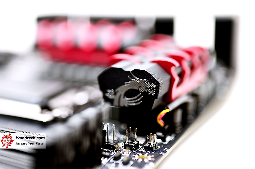 …ซิงค์ระบายความร้อนให้ภาคจ่ายไฟ งดงามทุกมุมมองจริงๆครับ แถมยังมีไฟ LED สีแดงงดงามเวลาเปิดใช้งานบริเวณนี้อีกด้วยครับ