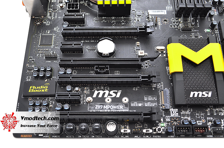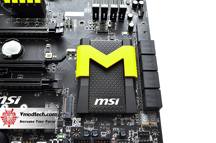มีปุ่ม Power , Reset , OC Genie mode switch , Slow mode switch เอาไว้เล่นของเย็นอย่าง Dry ice หรือ Ln2 , Base Clock control buttons ให้ใช้งานแบบครบๆสะดวกสบายครับเหมาะกับขาโอเวอร์คล๊อกจริงๆ