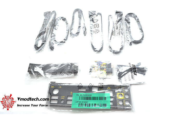 อุปกรณ์ต่างๆประกอบด้วย สาย SATA3 สามชุด 6เส้น ฝาหลัง สาย SLI และสายโพลบ