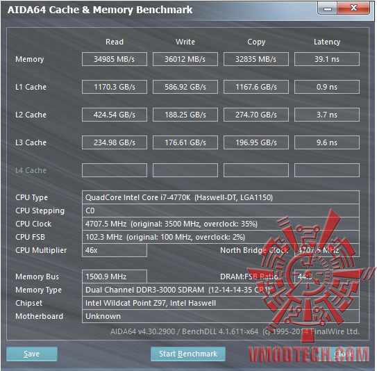 ค่า Memory Read อยู่ที่ 34985MB/s เลยทีเดียวครับส่วนค่า Write อยู่ที่ 36012MB/s เร็วตามบัสแรมที่วิ่ง 2863Mhz ครับ โดยกด Timing เพิ่มความแรงกันนิดหน่อย