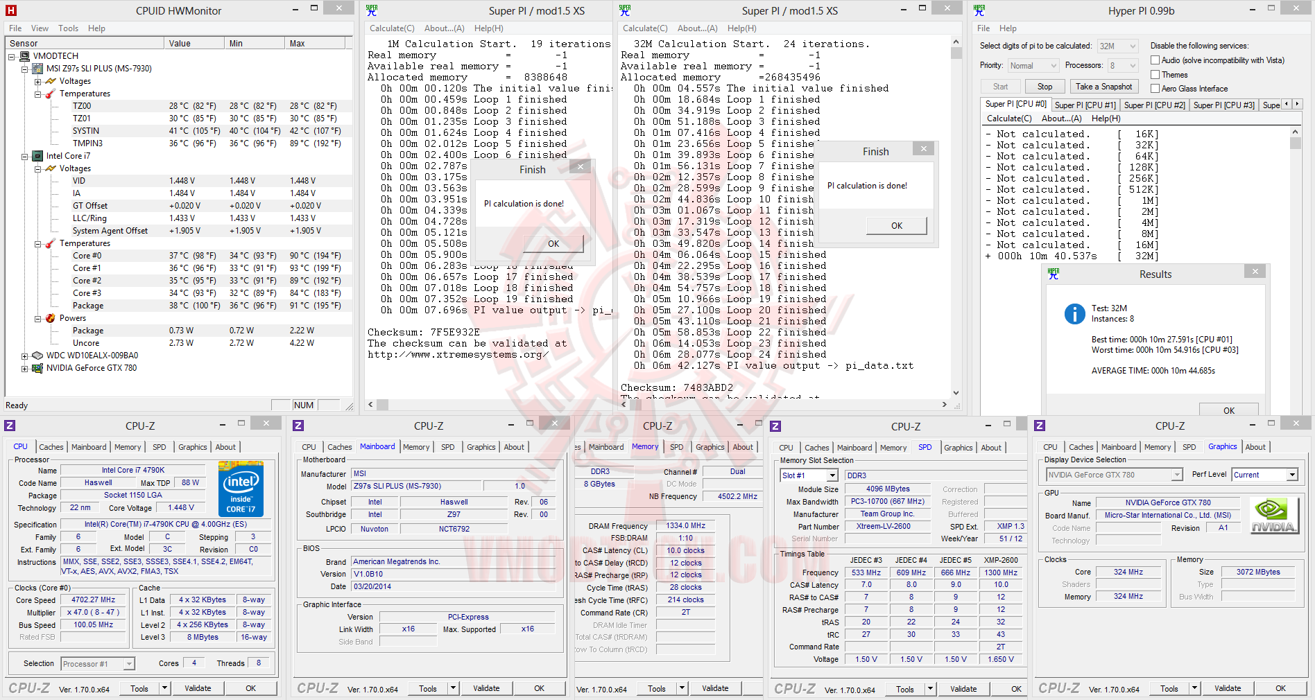 SuperPI 1M 1Thread, 32M 1Thread & 32M 8Threads