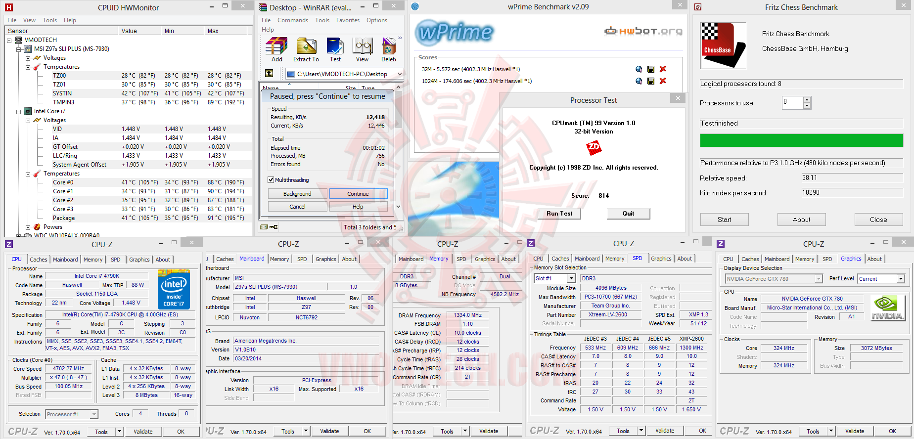 WinRAR Benchmark ,wPrime2.09 , CPUMark99 & Fritz Chess Benchmark