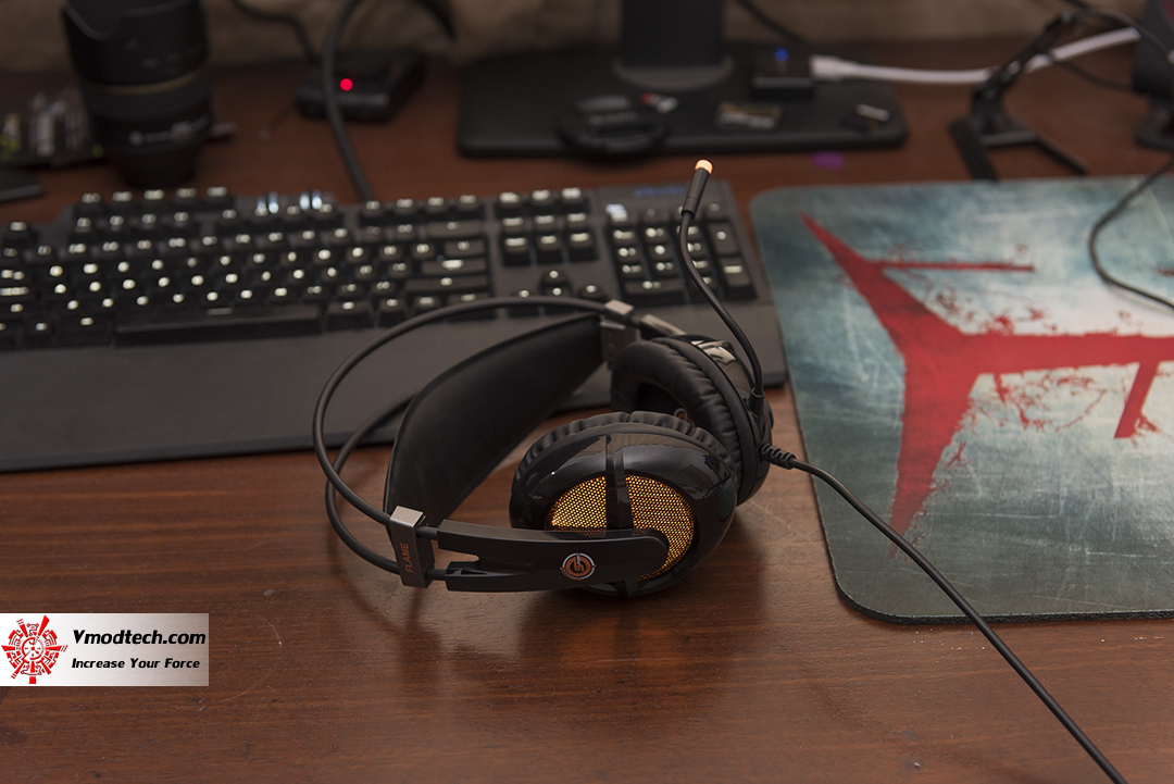 บริเวณชุดควบคุมความดังครับการเชื่อมต่อนั้นจะเป็นแบบ USB เร่ง/ลดเสียง ปิดไมค์ หรือปิด/เปิดแสงสีบริเวณหูฟังได้ด้วย