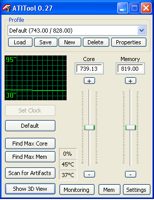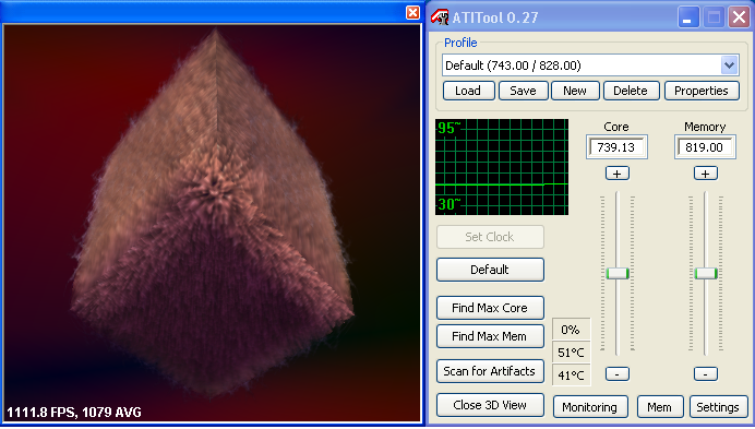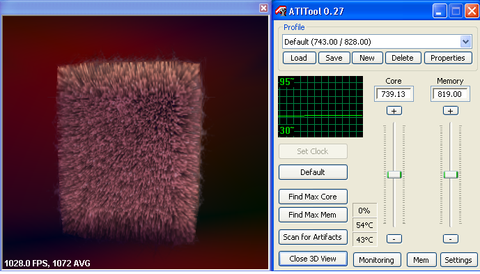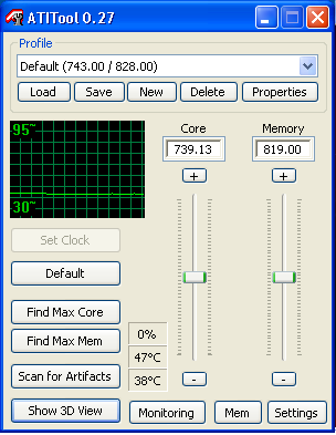 Test Methods - เราจะทำการเปิดโปรแกรม ATI tool เพื่อทำให้การ์ดเข้าสู่โหมดการทำงาน 3D และบันทึกค่าอุณหภูมิ หลังจาก 10 นาทีถัดไป หลังจากนั้น จะทำการเปิด 3Dmonitor View ในตัวโปรแกรม ATItool เพื่อทำให้การ์ดทำงานแบบ Full load ทิ้งไว้ 10 นาที แล้วทำการบันทึกอุณหภูมิ - ทดสอบในลักษณะนี้ ทุกๆช่วงรอบความเร็วของพัดลม - ทดสอบในห้องปรับอากาศ 25องศาเซลเซียส