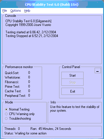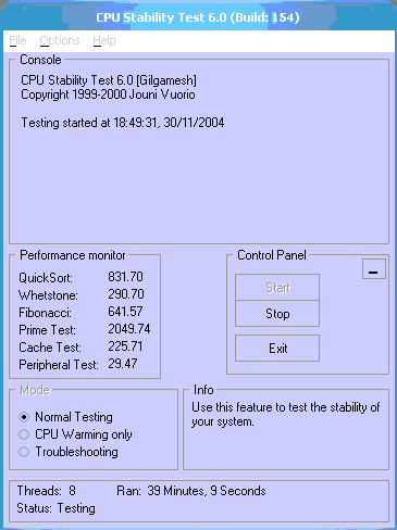 ต่อไปผมจะใช้โปรแกรม CPU Stabiilty ในการ Burn CPU เพื่อทดสอบ FULL LOAD (โปรแกรมตัวนี้สามารถทำให้ CPU ทำงานที่ 100%)
