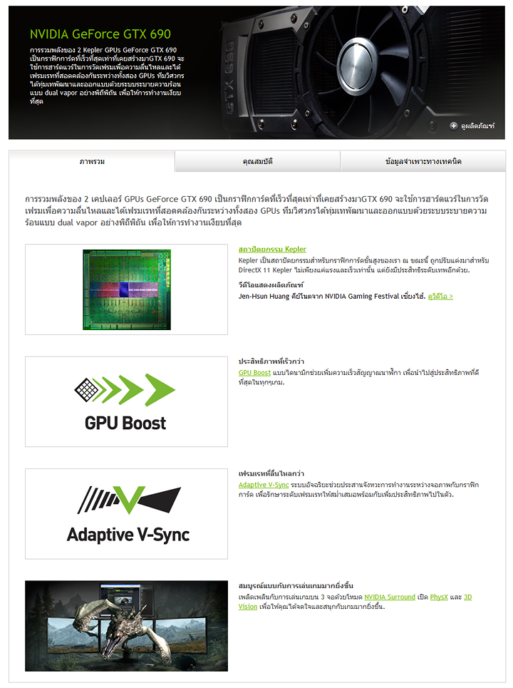 …สวัสดีครับ สำหรับในวันนี้ ผมก็จะมีกราฟฟิคการ์ดที่ใช้ชิป Kepler GK104 28 nm รุ่นสูงสุดทวินเทอร์โบสองชิปคู่จากทาง NVIDIA ที่มีชื่อทางการค้าว่า NVIDIA GeForce GTX 690 มานำเสนอกันที่ Vmodtech.com เราในแบบที่เรียกได้ว่าเป็นที่แรกและที่เดียวในประเทศไทยเลยครับ ที่ได้รับการ์ดตัว Reference โดยตรงจากทาง NVIDIA ซึ่งนับว่าเป็นเกียรติต่อทางเราและประเทศไทยเป็นอย่างยิ่ง เนื่องจากมีเพียงไม่กี่ประเทศในเอเชียเท่านั้นนะครับ ที่ได้กราฟฟิคการ์ดตัวทดสอบรุ่นนี้โดยตรงจากทาง NVIDIA มาทำการทดสอบ ก็เนื่องจากว่าตัวกราฟฟิคการ์ดรุ่นนี้ไม่ได้มีเป้าหมายทางการตลาดในทวีปเอเชียนั่นเอง และก่อนที่จะทำการทดสอบ เราก็ไปชมรายละเอียดต่างๆของการ์ดรุ่นนี้กันก่อนเลยครับ