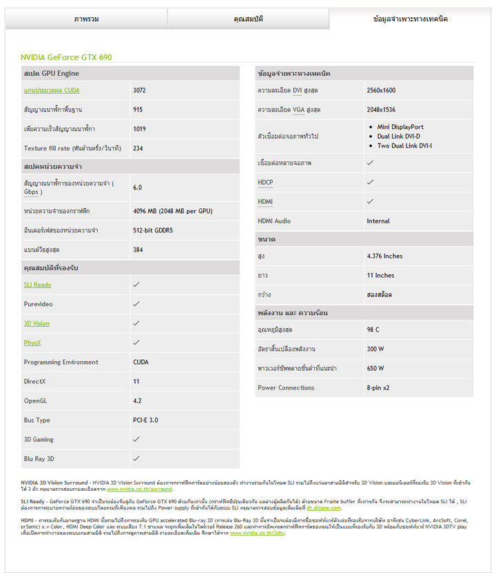 ตารางเปรียบเทียบรายละเอียดของกราฟฟิกการ์ด