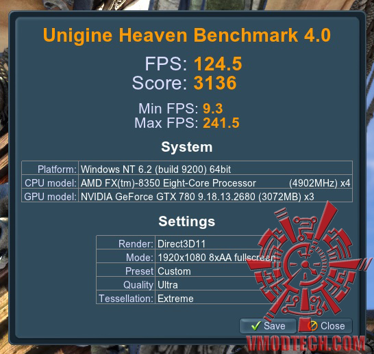 Unigine Heaven 4.0 โปรแกรมที่กินสเปคแบบสุดๆ เปิดแบบสุดหมดจัดเต็ม เฟรมเรตทะลุอยู่ที่ 124.5เฟรมเรต แบบเปิดสุดหมดกับชุดทดสอบมหาโหด Unigine Heaven 4.0 แรงมากจนน่าตกใจจริงๆครับ