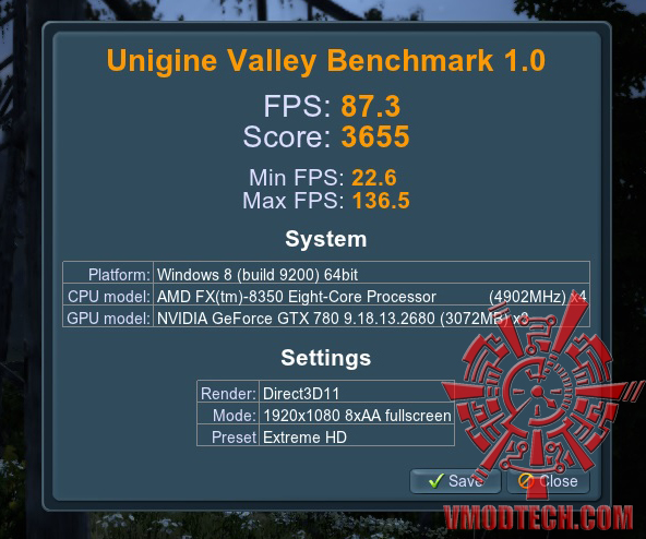 Unigine Valley 1.0 เฟรมเรตทะลุอยู่ที่ 87.3เฟรมเรต แบบเปิดสุดหมดแรงมากครับ