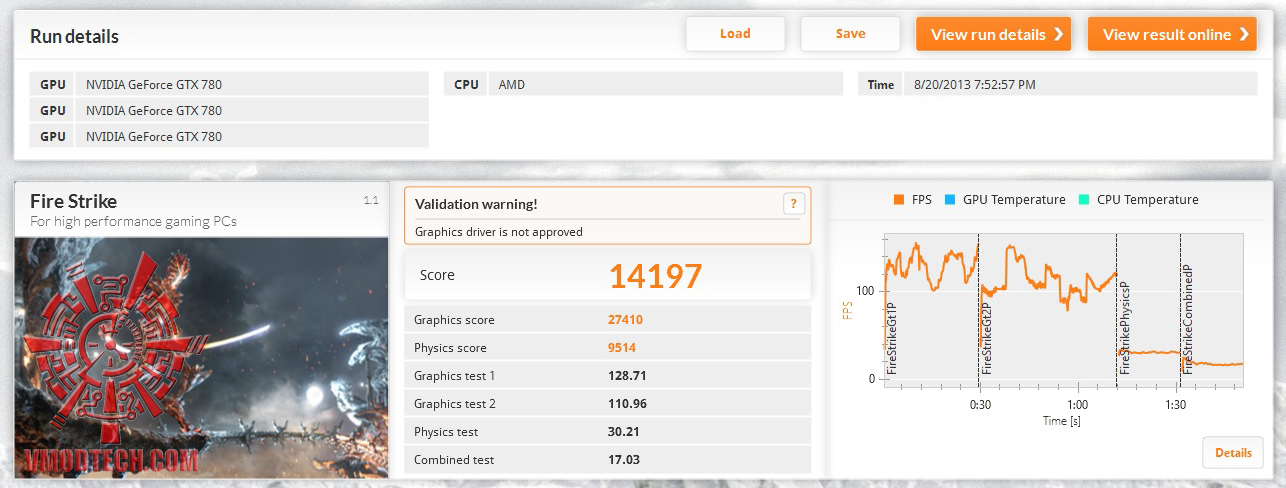 สำหรับชุด ทดสอบ 3DMark 2013 ชุดทดสอบ Fire Strike คะแนนออกมา 14197คะแนน แรงจัดกันจริงๆ