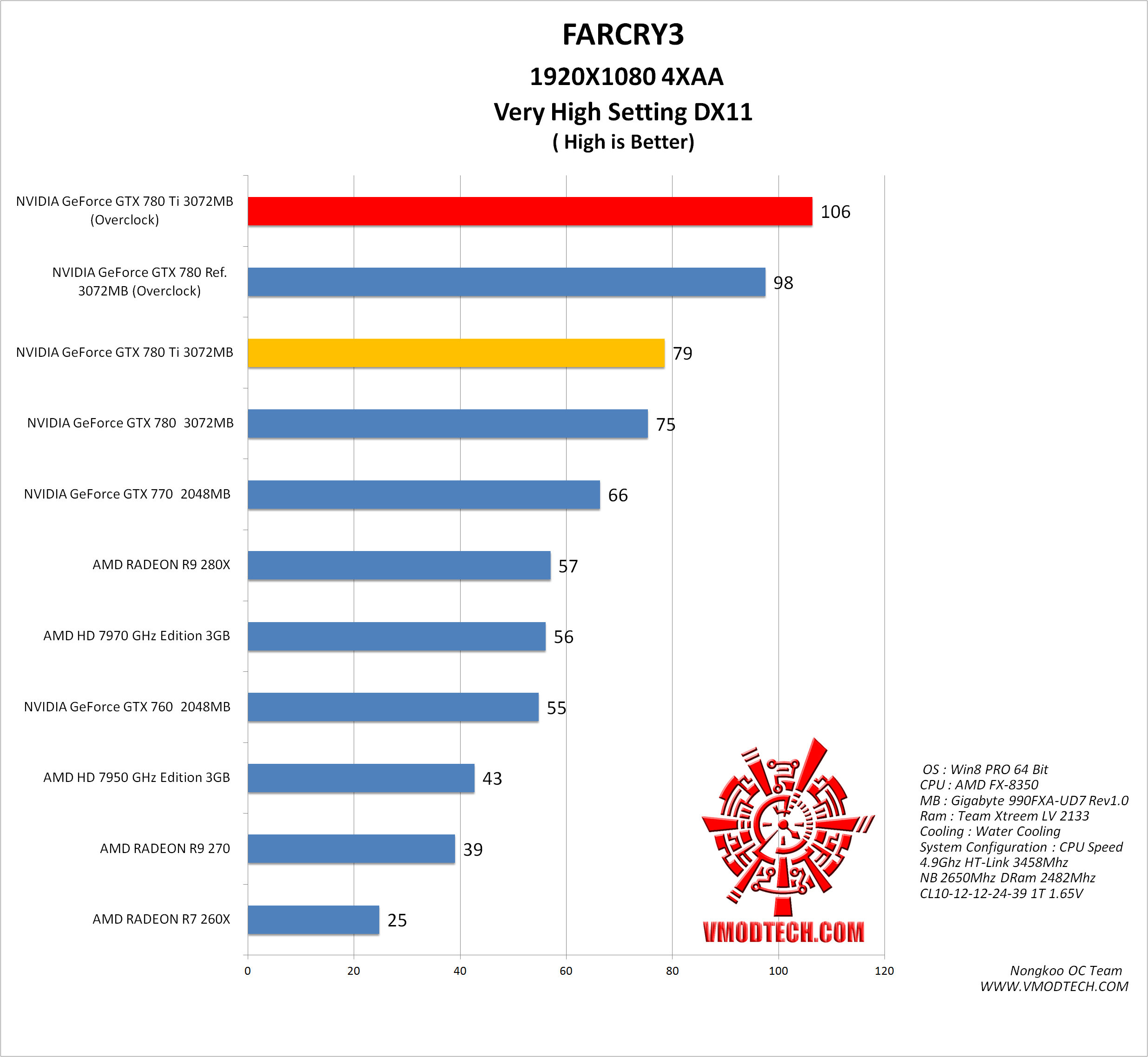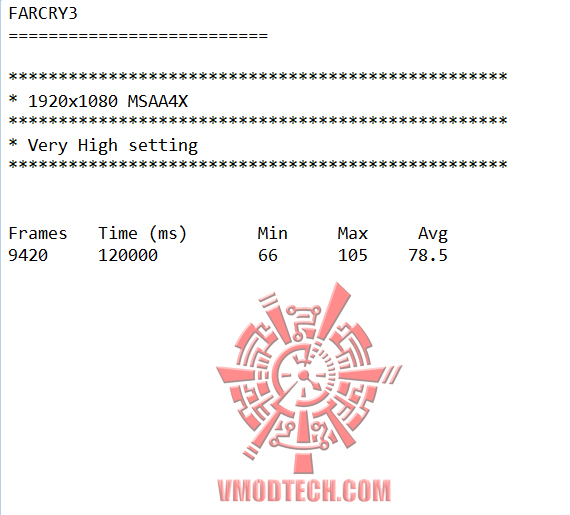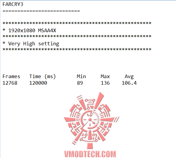 FARCRY3 ความละเอียด 1920X108 Very High MSAA 4X เฟรมเรตอยู่ที่ 106เฟรมเรต แรงกันแบบทะลุร้อยกันไปอีกเกมส์ครับ สำหรับเกมส์ที่กินสเปกอย่าง FARCRY3