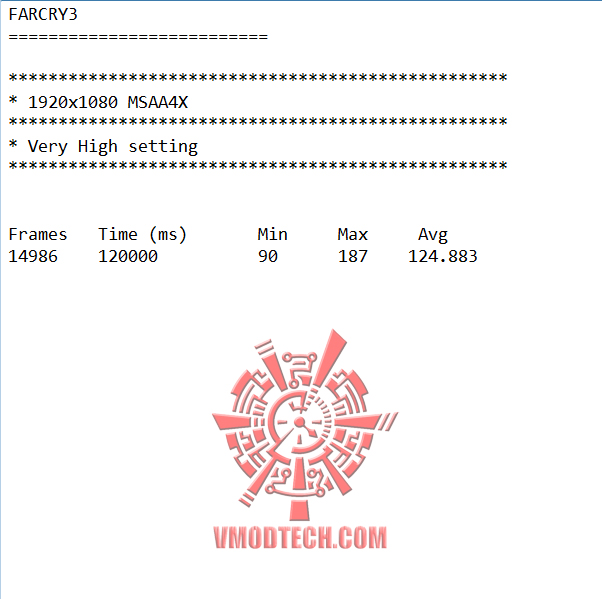 FARCRY3 ความละเอียด 1920X1080 Very High MSAA 4X เฟรมเรตอยู่ที่ 124เฟรมเรต โหดมากครับ
