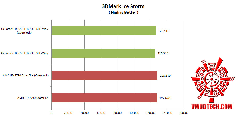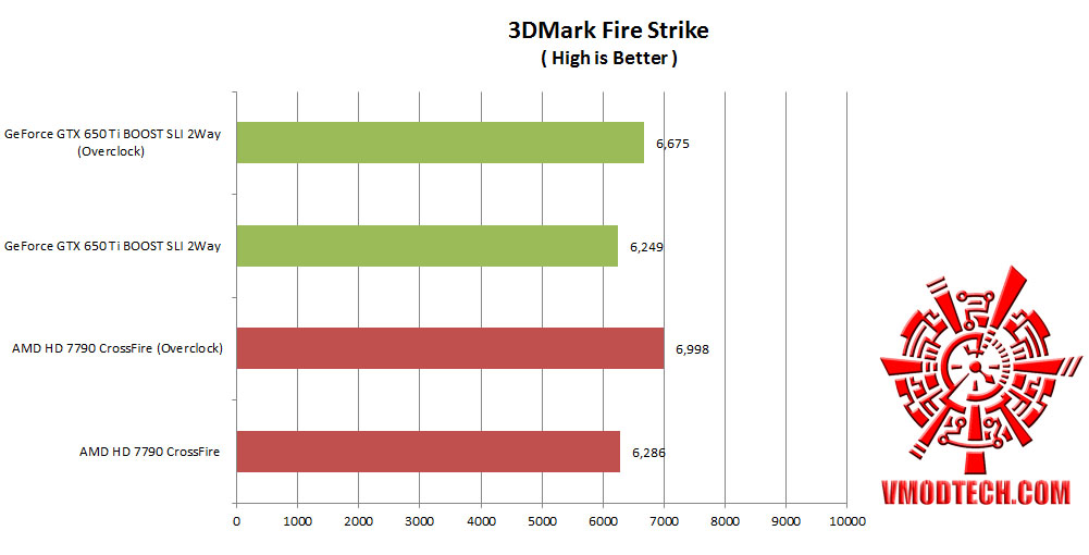 สำหรับชุดทดสอบ Fire Strike ในโหมด DF คะแนนใกล้เคียงกันมาก แต่ในโหมด OC AMD Radeon HD 7790 CrossFire ทำคะแนนค่อนข้างทิ้งห่างเลยทีเดียวครับ เกือบทะลุเจ็ดพันเลยทีเดียว