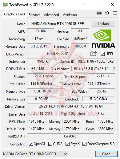 NVIDIA GeForce RTX 2060 SUPER from GPUZ