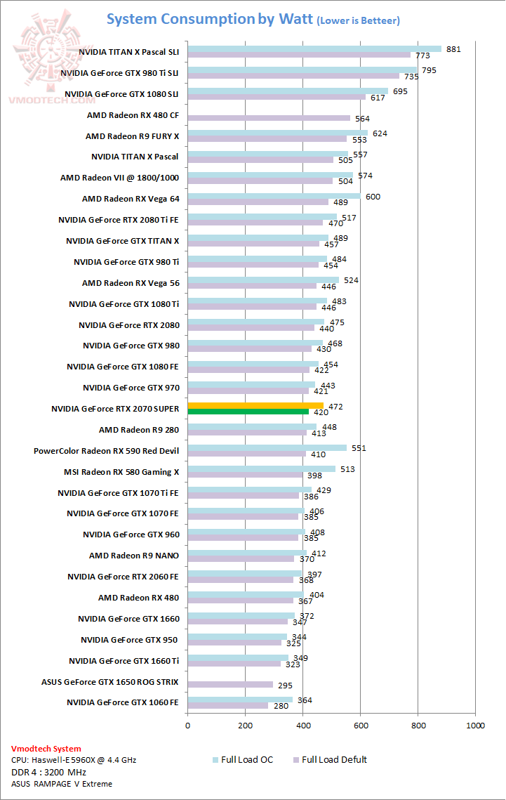 ภาพรวมความสามารถของกราฟฟิกการ์ด NVIDIA GeForce RTX 2070 SUPER นั้นหากมองจากเกมส์ Benchmark ที่ได้ทดสอบไป Performance นั้นจะสูสีกับ GTX 1080 Ti ซึ่งเป็นการ์ดรุ่นท๊อปของเจนก่อน แต่ถ้าหากมองดู Benchmark และเกมส์ที่ใหม่ๆ ตัว 2070 SUPER จะสูงกว่าครับ ส่วนถ้าจะไปเทียบกับการ์ดค่ายตรงข้ามก็คงพอจะเห็นว่าแรงประมาณไหนจากกราฟเปรียบเทียบท้ายการทดสอบทุกตัวครับ ความร้อนถือว่าไม่มากครับในการใช้งานแบบ Default clock และถึงแม้จะ Overclock ไป ความร้อนก็ไม่ขึ้น แบบนี้ไม่จำเป็นต้องปรับรอบให้สูงครับ ปล่อยตามโพรไฟล์ของการ์ดได้เลย ด้านการเรียกใช้ไฟจากเต้ารับรวมทั้งระบบที่ใช้ทดสอบ จะเห็นครับว่ากินน้อยกว่า 1080 Ti สิบวัตต์เลยครับ แรงกว่าแต่กินไฟน้อยกว่านี่เยี่ยมครับ เป็นการพัฒนาอย่างแท้จริง