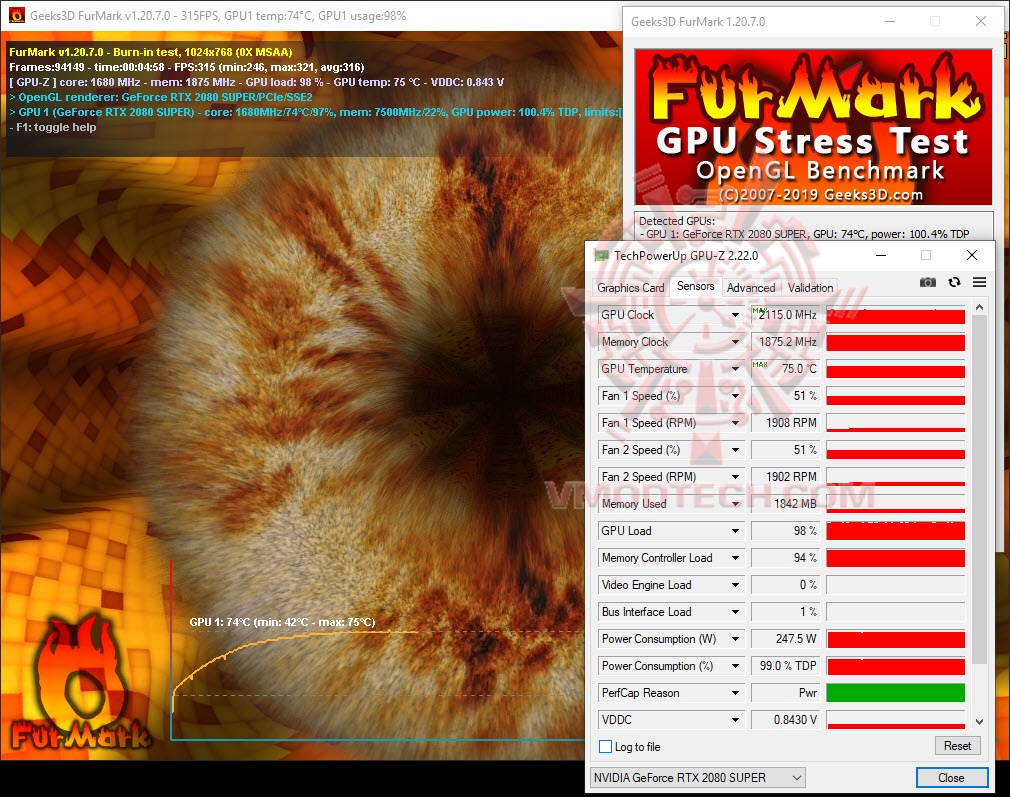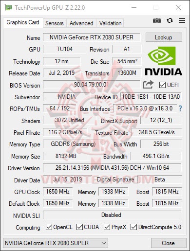 NVIDIA GeForce RTX 2080 SUPER @ 1650/1938/1815 MHz Core/Mem/Boost