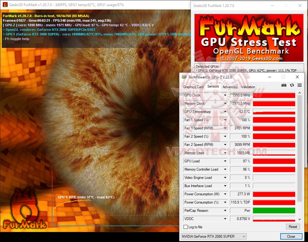 NVIDIA GeForce RTX 2080 SUPER Overclock @ 1790/2034/1955 MHz Core/Mem/Boost