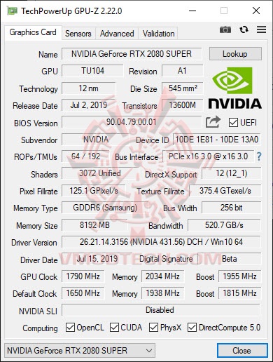 NVIDIA GeForce RTX 2080 SUPER from GPUZ