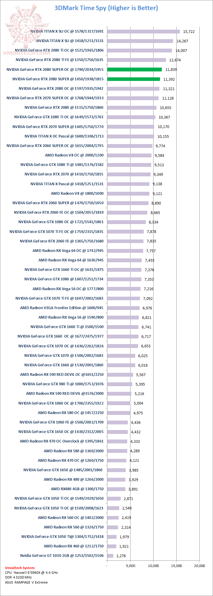 ภาพรวมความสามารถของกราฟฟิกการ์ด NVIDIA GeForce RTX 2080 SUPER จากเกมส์ Benchmark ที่ได้ทดสอบไป Performance นั้นจะขึ้นไปเบียดกับกับ RTX 2080 Ti ซึ่งเป็นการ์ดรุ่นท๊อปของเจนก่อน แต่ถ้าหากมองดู Benchmark และเกมส์ที่ใหม่ๆ ตัว 2080 SUPER จะสูงกว่าตัว RTX 2080 ครับ ความร้อนถือว่าไม่มากครับในการใช้งานแบบ Default clock และถึงแม้จะ Overclock ไป ความร้อนก็ไม่ขึ้น แบบนี้ไม่จำเป็นต้องปรับรอบให้สูงครับ ปล่อยตามโพรไฟล์ของการ์ดได้เลย ด้านการเรียกใช้ไฟจากเต้ารับรวมทั้งระบบที่ใช้ทดสอบ จะเห็นครับว่ากินน้อยกว่า RTX 2080 Ti อยู่ร่วมๆยี่สิบวัตต์ และมากกว่า 1080 Ti สิบห้าวัตต์เท่านั้นครับ แรงกว่ากินไฟสมเหตุสมผลแบบนี้ถือเป็นการพัฒนาอย่างแท้จริง