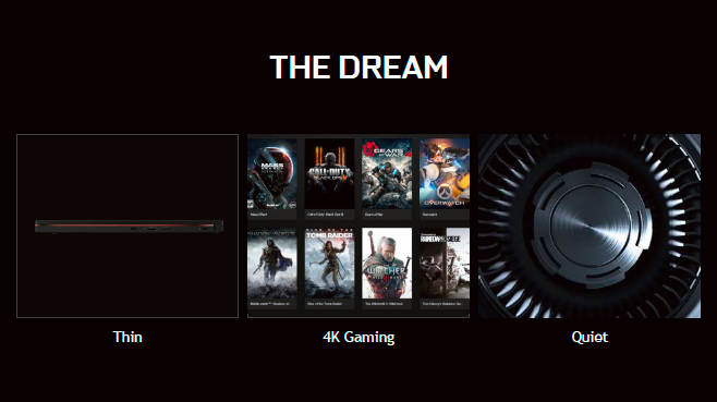 ความฝันของโปรเจกนี้ก็คือ ต้องการโน๊ตบุ๊คที่บาง เล่นเกมส์ความละเอียด 4K ได้อย่างเงียบสงัดกว่า