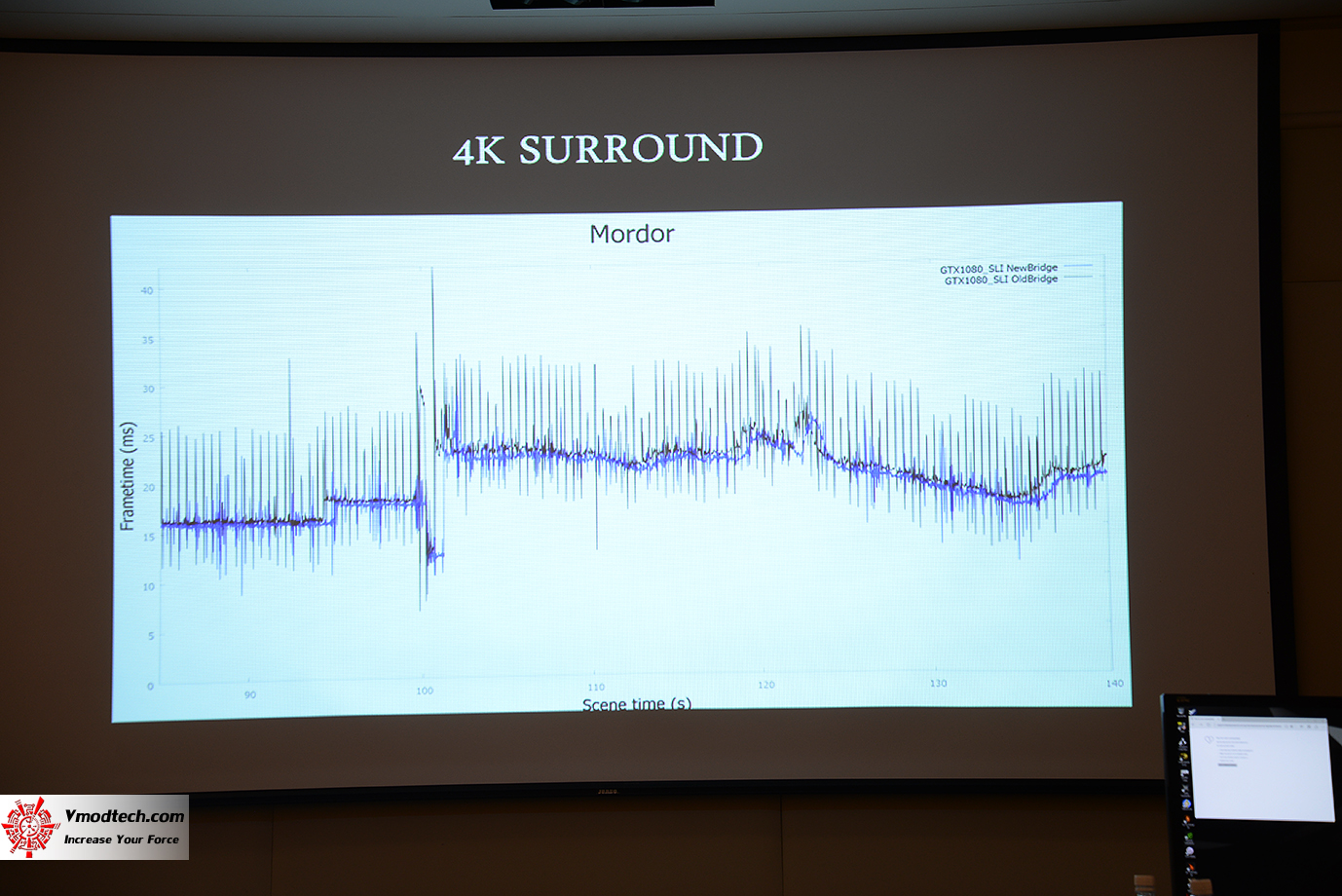 จากกราฟจะเห็ยได้ชัดครับว่า SLI บริดแบบใหม่นั้นทำ frametime ได้ต่ำมากๆครับ ทำให้การใช้งานนั้นลื่นไหลมากกว่าเดิมครับ