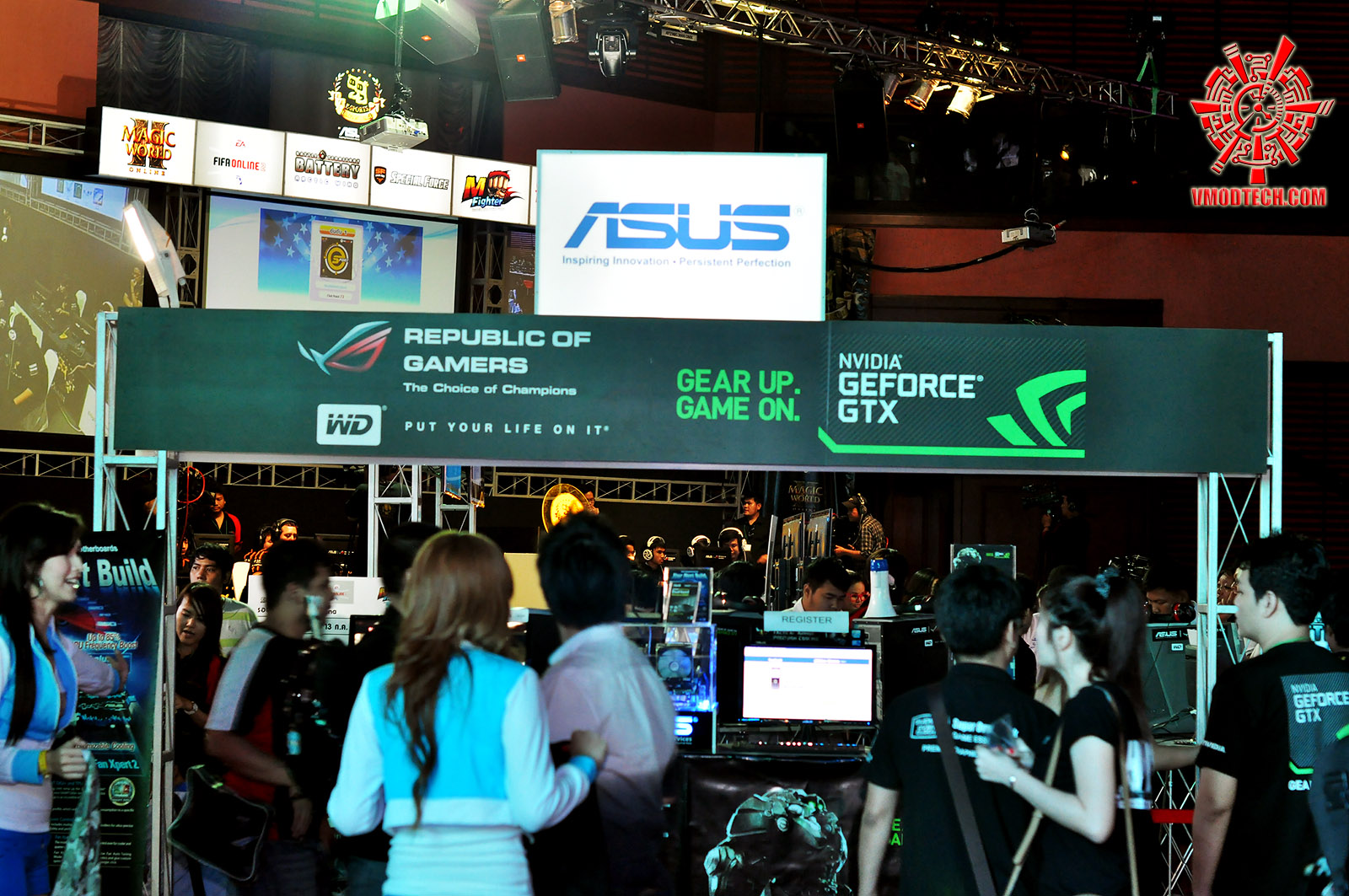 …ไปต่อที่บูธ ASUS NVIDIA ด้านในฮอลล์กันต่อดีกว่าครับ โดยบูธนี้หลักๆจะเป็นการแข่งขันเล่นเกมส์ StarCraft II ชิงรางวัลนะครับ ซึ่งก็มีผู้สนใจมาร่วมลงทะเบียนแข่งขันกันอย่างหนาตาทีเดียว แล้วก้เช่นกันครับกิจกรรมในลักษณะนี้ จะไม่ได้อยู่ในความสนใจของผมสักเท่าไหร่เช่นเคย ตามไปทำกิจกรรมวิญญูชนกับผมกันต่อดีกว่าครับ