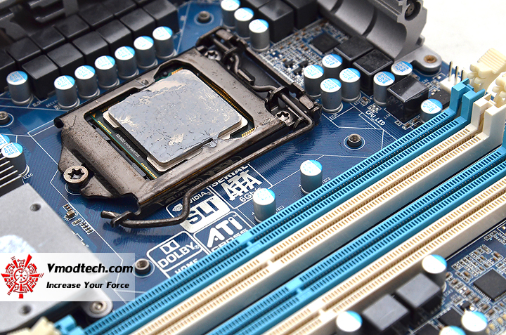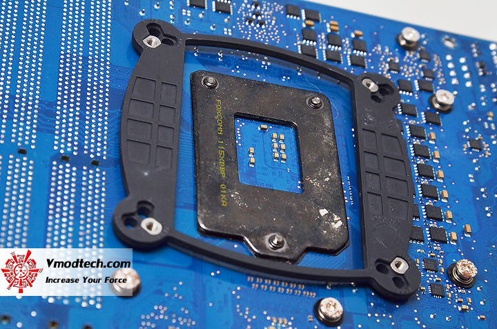 ตรงนี้เป็น Backplate ที่ประคองด้านหลังบอร์ดไม่ให้โก่งงอและเป็นตัวจับยึดชุดล๊อคด้านหน้าครับ เวลาจะใส่บู๊ชก็ลองๆหาไฟส่องดูนะครับว่ารูไหนที่ใช้กับ CPU Socket ของเรา