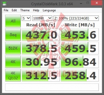 ผมลองใส่ข้อมูลเข้าไปใน OCZ ARC 100 Series 240GB จนเต็ม 100% เทียบกับ SSD เปล่าดูครับ ความเร็วในการอ่าน/เขียนนั้นไม่ต่างไม่ว่าจะมองตรงจุดไหนของ Benchmark รวมถึงเมื่อใช้งานจริง