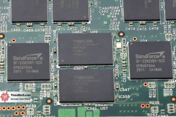 ในส่วนของภาพคอนโทรล โดยที่จุดหลักจะเป็น Controller LSI SandForce SF-2282VB1 จำนวนสี่ตัวขนาบไปกับ FLASH MLC