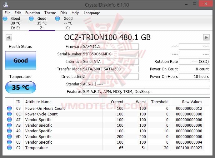 OCZ TRION 100 SSD 480GB from Crystal Disk Info