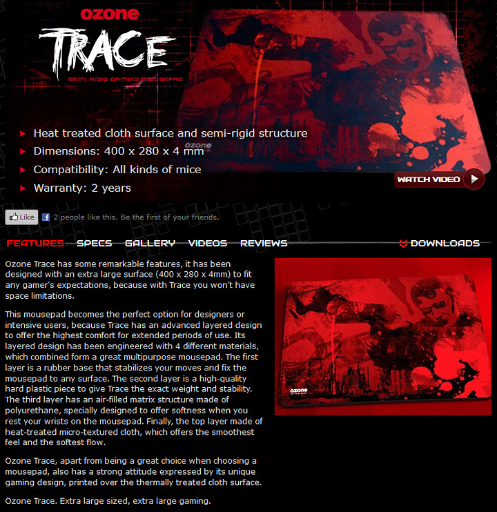 สวัสดีครับ วันนี้มาแบบแดงเถือกกันเลยกับแผ่นรองเมาส์เท่ห์ๆจากแบรนด์ OZONE ที่ผมได้เคยรีวิวไปสองรุ่นแล้วนะครับ วันนี้หยิบเอา OZONE TRACE Semi Rigid Gaming Mousepad มาทดลองกันอีกซักรุ่นนึง ซึ่งรุ่นนี้ผมเองรู้สึกชอบเป็นการส่วนตัวด้วย มาชมรายละเอียดของเจ้า OZONE TRACE กันก่อนจากหน้าเว็บของ OZONEgaming.com