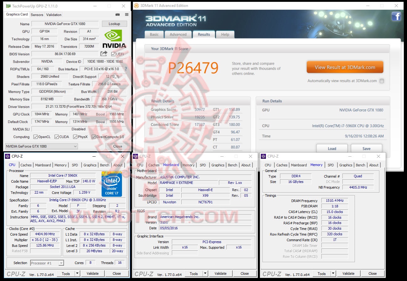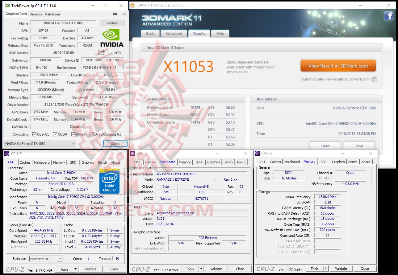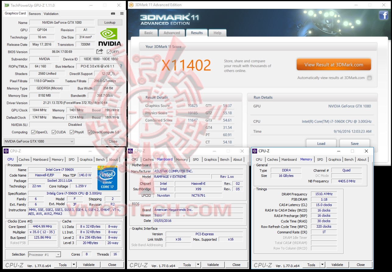 PALIT GeForce GTX 1080 GAMEROCK Premiem OC @ 1844/1401/1983 MHz Core/Mem/Boost