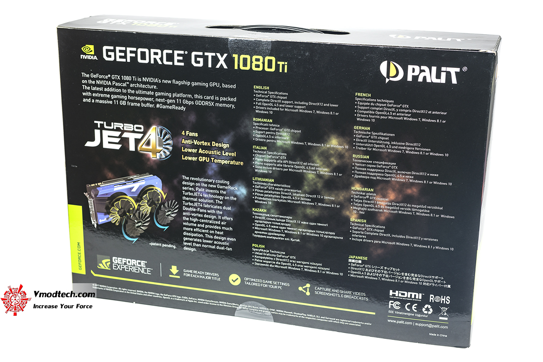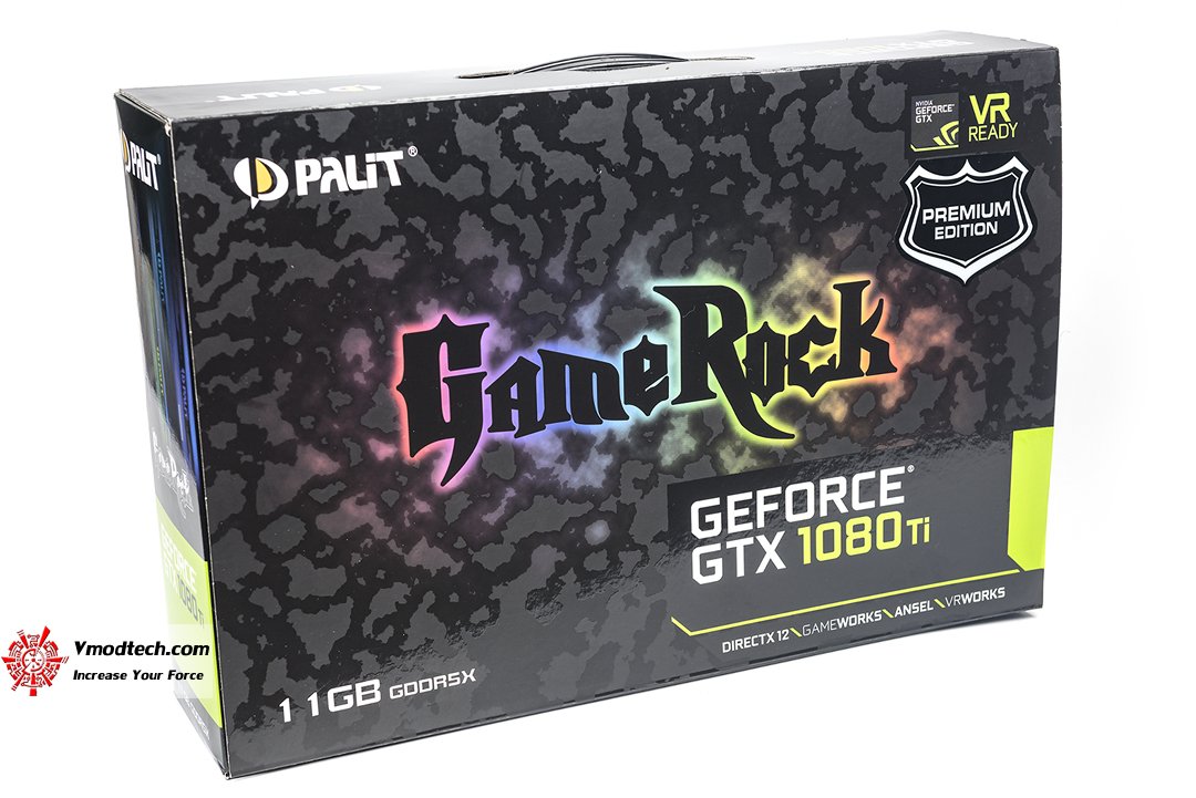 หน้าตาของตัวกล่องบรรจุ PALIT GeForce GTX 1080 Ti GameRock Premium Edition นั้นได้ถูกออกแบบมาได้จี๊ดจ๊าดสะดุดตามากๆครับ รายละเอียดและเทคโนโลยีต่างๆดังที่กล่าวไปแล้วก็สามารถชมแบบสรุปได้จากหลังกล่องเช่นเคย