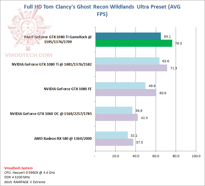 .จากผลการทดสอบทั้งหมดของกราฟฟิกการ์ด PALIT GeForce GTX 1080 Ti GameRock Premium Edition นั้นจะเห็นได้ชัดเจนครับว่า ด้วยความเร็วที่ถูกปรับแต่งมาจากโรงงานนั้นส่งผลให้ประสิทธิภาพในการ Benchmark และเล่นเกมส์นั้นสูงกว่าการ์ดรุ่น Founder Edition และมันยังสามารถโอเวอร์คล๊อกขึ้นไปได้อย่างมีเสถียรภาพที่ 1649/1573/1763 MHz ครับ นอกเหนือจากความสามารถของ GPU GTX 1080 Ti แล้ว สิ่งที่น่าสนใจและเป็นจุดเด่นก็คือพัดลมคู่ที่ได้ถูกออกแบบมาด้วยเทคโนโลยี Turbo Jet 4 โดยใช้พัดลมสองตัวที่ใบพัดนั้นจะหมุนคนละทิศทางกันด้วยเทคโนโลยี Anti Vortex ที่จะช่วยระบายลมไปในทิศทางที่ไม่รบกวนกันเพื่อช่วยยกระดับการระบายความร้อนให้ดียิ่งกว่า รวมถึงแสงไฟ RGB LED ที่สามารถปรับแต่งได้ตามใจชอบผ่านทาง ThunderMaster ที่สามารถดาวน์โหลดได้จากหน้าเว็บไซด์ ทั้งหลายนี้นั้นช่วยส่งผลให้ PALIT GeForce GTX 1080 Ti GameRock Premium Edition สามารถเล่นเกมส์ได้อย่างสุดๆพร้อมๆไปกับเสถียรภาพที่ดีกว่าจากชุดระบายความร้อนที่ได้รับการออกแบบมาเป็นอย่างดี