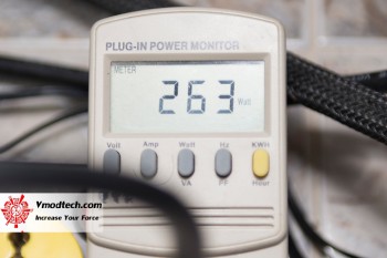 ผมปรับรอบพัดลมไว้ 100% กินไฟจากเต้ารับประมาณ 263 วัตต์โดยเฉลี่ยซึ่งแทบไม่ต่างจากโหมดปกติเลย ความร้อนก็อยู่แถวๆ 60 องศาเซลเซียส