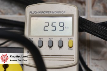 ผมปรับรอบพัดลมไว้ 100% กินไฟจากเต้ารับประมาณ 259 วัตต์โดยเฉลี่ยซึ่งแทบไม่ต่างจากโหมดปกติเลยและความร้อนก็อยู่ไม่เกิน 58 องศาเซลเซียส