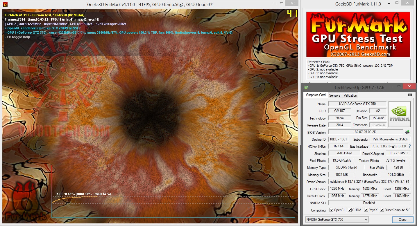 ความเร็วมาตรฐานของ Palit GeForce GTX 750 Ti นั้นได้ถูกโอเวอร์คล๊อกมาจากค่ามาตรฐานของ Nvidia ที่ 1085/1375 MHz Core/Mem ซึ่งค่านี้จะเป็นค่า Core ที่ได้รับการโอเวอร์คล๊อกมาแล้ว 65 MHz ครับ