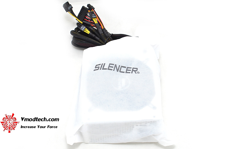 หน้าตาของ PSU Silencer Mk III 850W 80+ Gold ครับ สายไฟที่เป็นสายหลักจะถูกยึดติดไว้กับตัว PSU เลย
