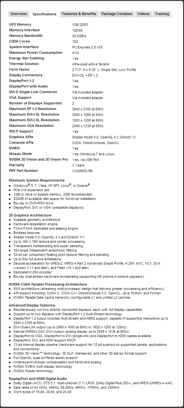 PNY NVIDIA Quadro K600 Professional Graphics Review
