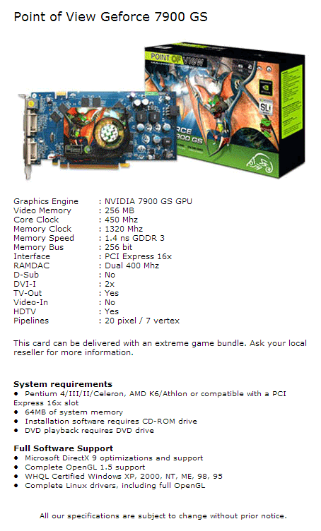 ข้อมูลต่างๆที่ทาง Point of view ได้แถลงไว้ในเว็บครับ อิอิ (สงสัยอย่าง K6 มันจะมีบอร์ด PCI-E ให้เล่นมั๊ยครับเนี่ย อิอิ)