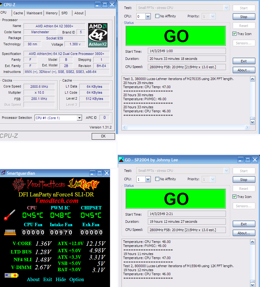ในส่วนนี้ผมได้ทดสอบในจุดที่เสถียรสุดๆ(ลองใช้งานมาแล้วเป็นอาทิตย์โดยไม่ปิดเครื่อง)ในแบบที่ผมต้องการ โดย System X2 3800+ นี้ผมใส่เคสแล้วยังสามารถทำงานทั้งวันไม่มีหยุดและสามารถทำงานในห้องที่อากาศประมาณ 30- 35 องศาโดยไม่มีปัญหา
